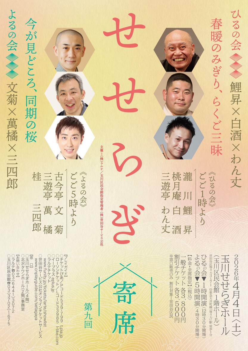 チラシダウンロードはこちらから⇒第九回せせらぎ寄席チラシ
