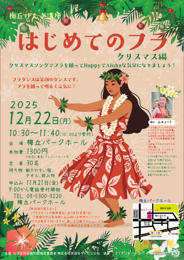 【講師】 谷本より子 (フラスタジオ ハーラウ・オ・リーリーレファ主宰)