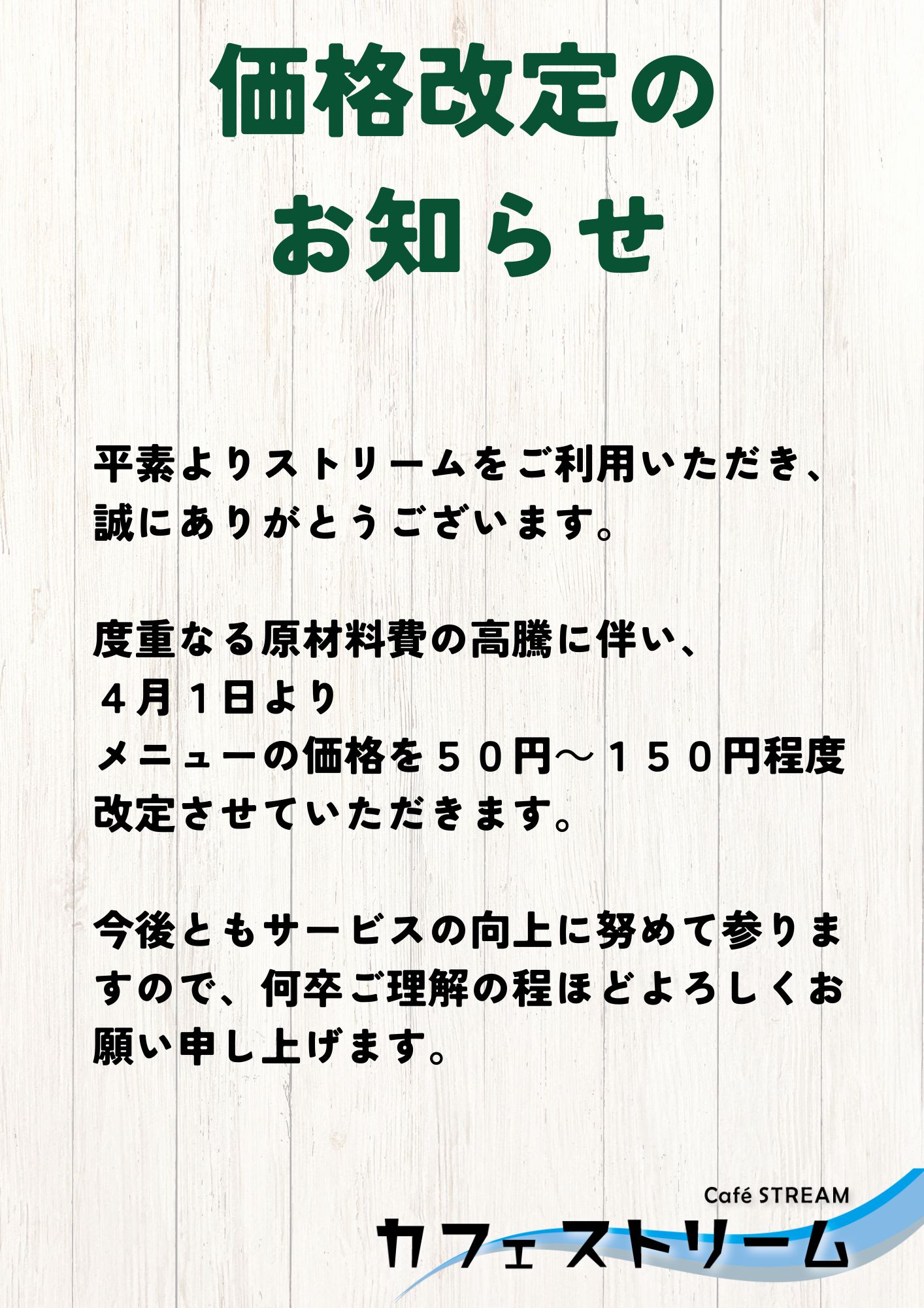 価格改定のお知らせ